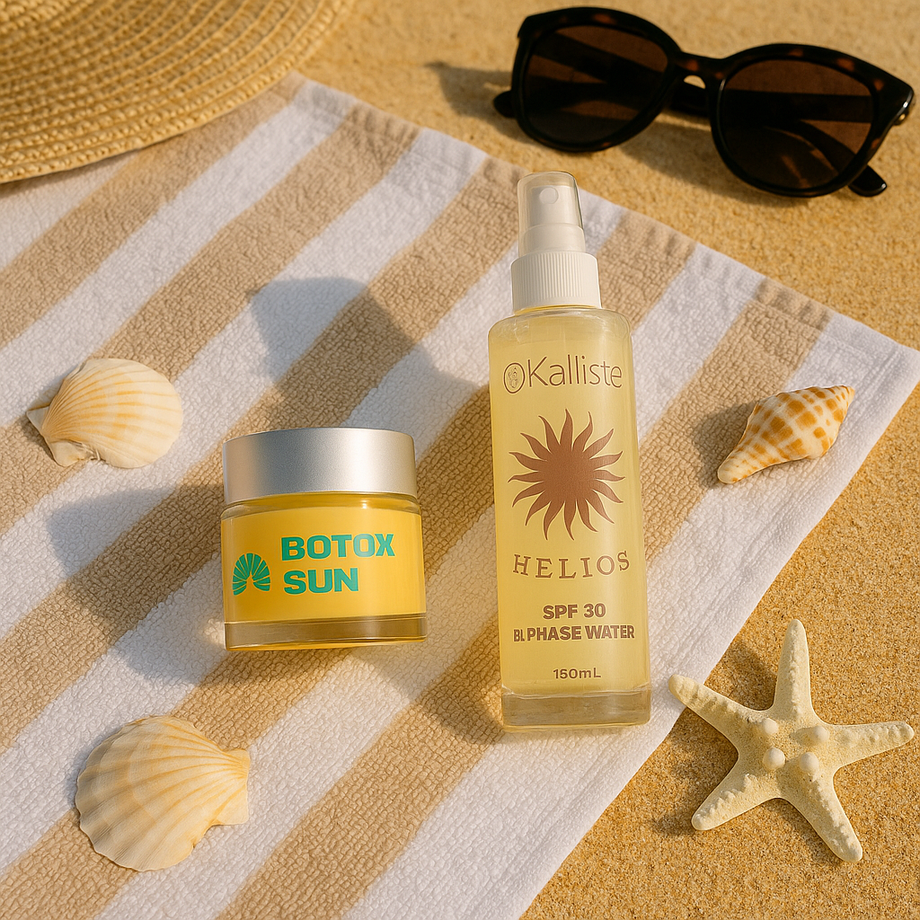 Αντηλιακή προστασία προσώπου & σώματος με λάμψη και ελαφριά υφή. Botox Sun + Kallisté Helios Bi-Phase SPF30– για καλοκαίρι με φροντίδα & στυλ.